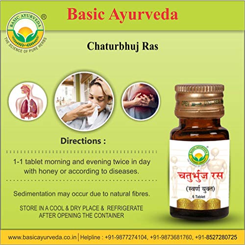 • Direction for use: It is recommended to take 1 tablet 2 times a day after meals or as directed by the physician. It is suggested to administer Chaturbhuj Ras with Honey for better absorption and efficiency.