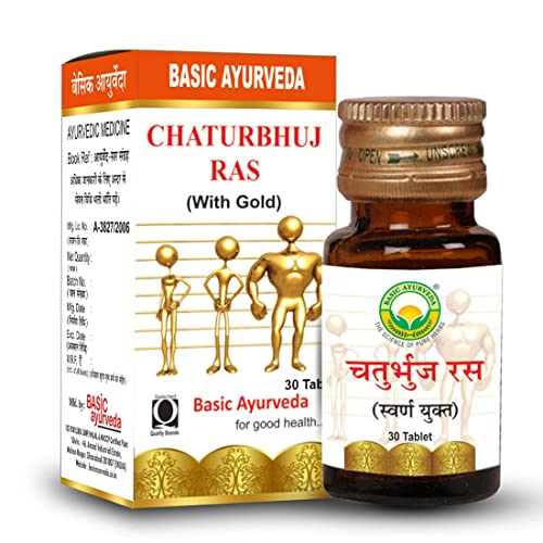 • Chaturbhuj Ras tablet contains a potent combination of the ingredients Mrita Suta Hema Bhasma Shilajatu Kasturika Tala Kanya Eranda Swarna Bhasma Ras Sindoor Manashila Hartal Bhasma Kasturi Gwarpatha ras errand leaf and other prominent herbs and minerals.