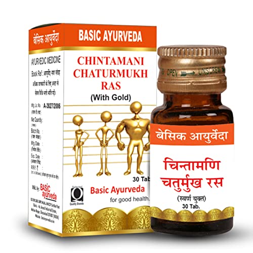 Basic Ayurveda Chintamani Chaturmukh Ras with Gold 30 Tablets | Herbal Supplement for Heart & Nerve Health