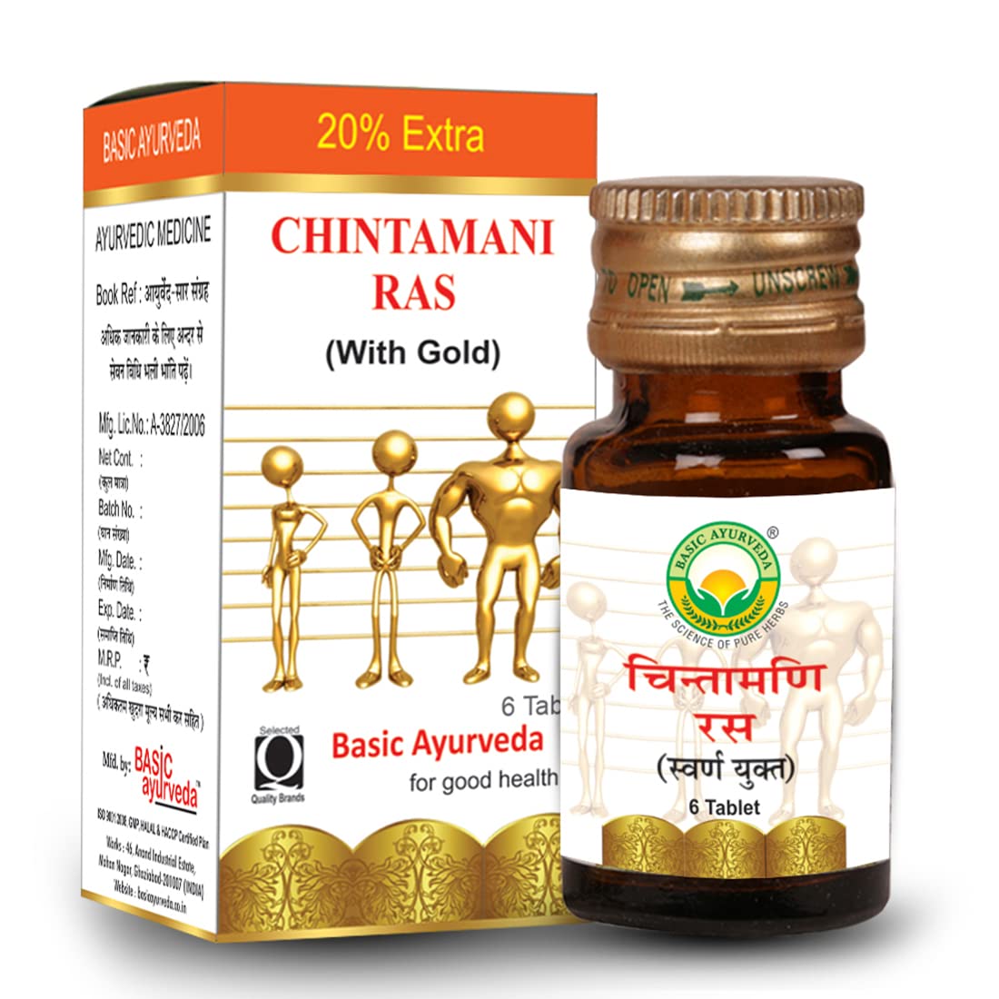 Basic Ayurveda Chintamani Ras with Gold 12 Tablets | Herbal Formula for Heart Health & General Wellness