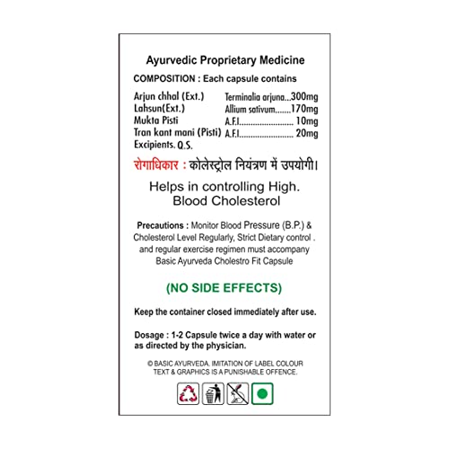 • Basic Ayurveda Cholestro Fit Capsule with all the goodness of nature comes in a 40 Capsules pack and is a certified product that is safe to consume daily.
