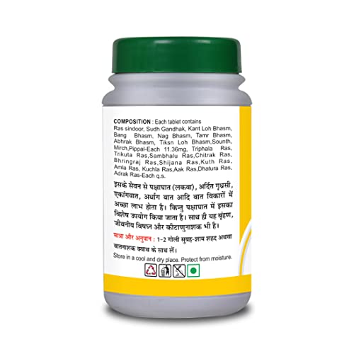 • Basic Ayurveda Ekangveer Ras is an Ayurvedic formulation with herbal and mineral ingredients in tablet form it is used for Vata-health and pain.