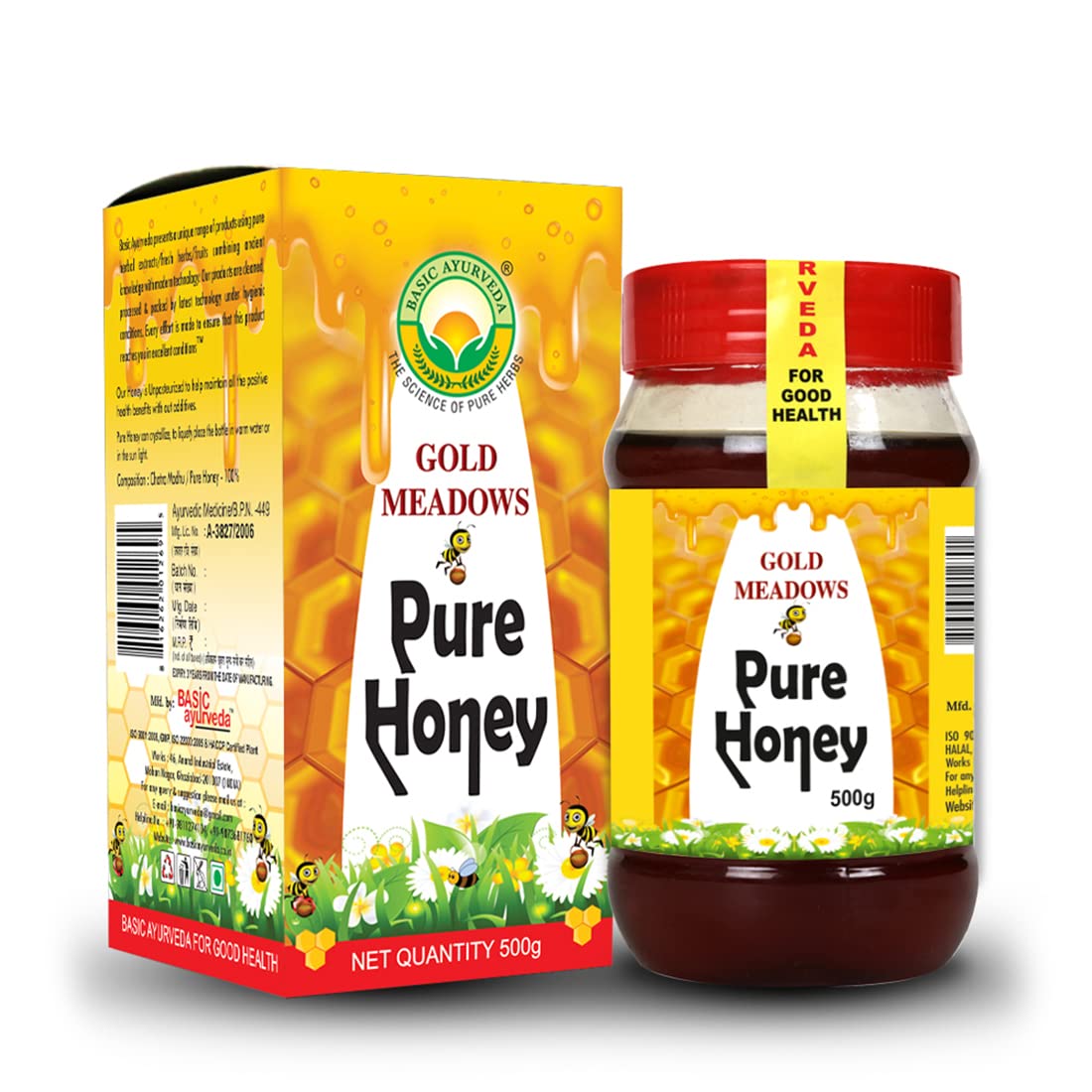 BASIC AYURVEDA Gold Meadows Pure Honey (Chatra Madhu) 500 Gram Pack Of 2 |