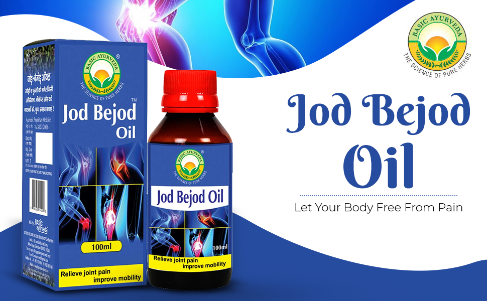 • Jod Bejod oil has many traditional ayurvedic herbs such as Shallaki Gum Lal Mirch Pudina Satva Kapoor Laung ka tel Neelgiri Oil Nirgundi Oil Dev Daru Oil Gandhpura Oil Ajwain Oil Mahamass Oil Mom Tail and other potent herbs.