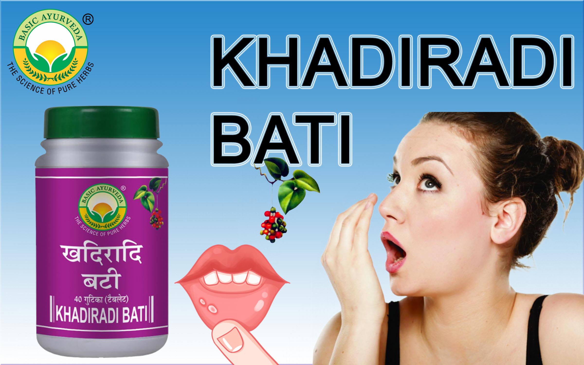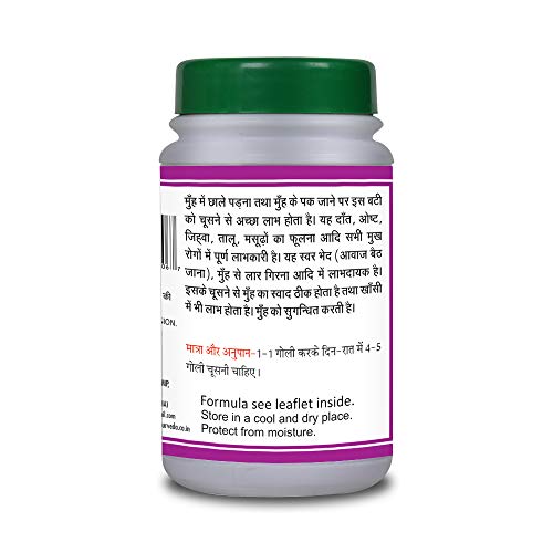 • According to Ayurveda Khadiradi Bati due to its unique properties provides aid in mouth-related problems. It is considered to possess Kashaya and Ropan properties helpful in the mouth ulcers.