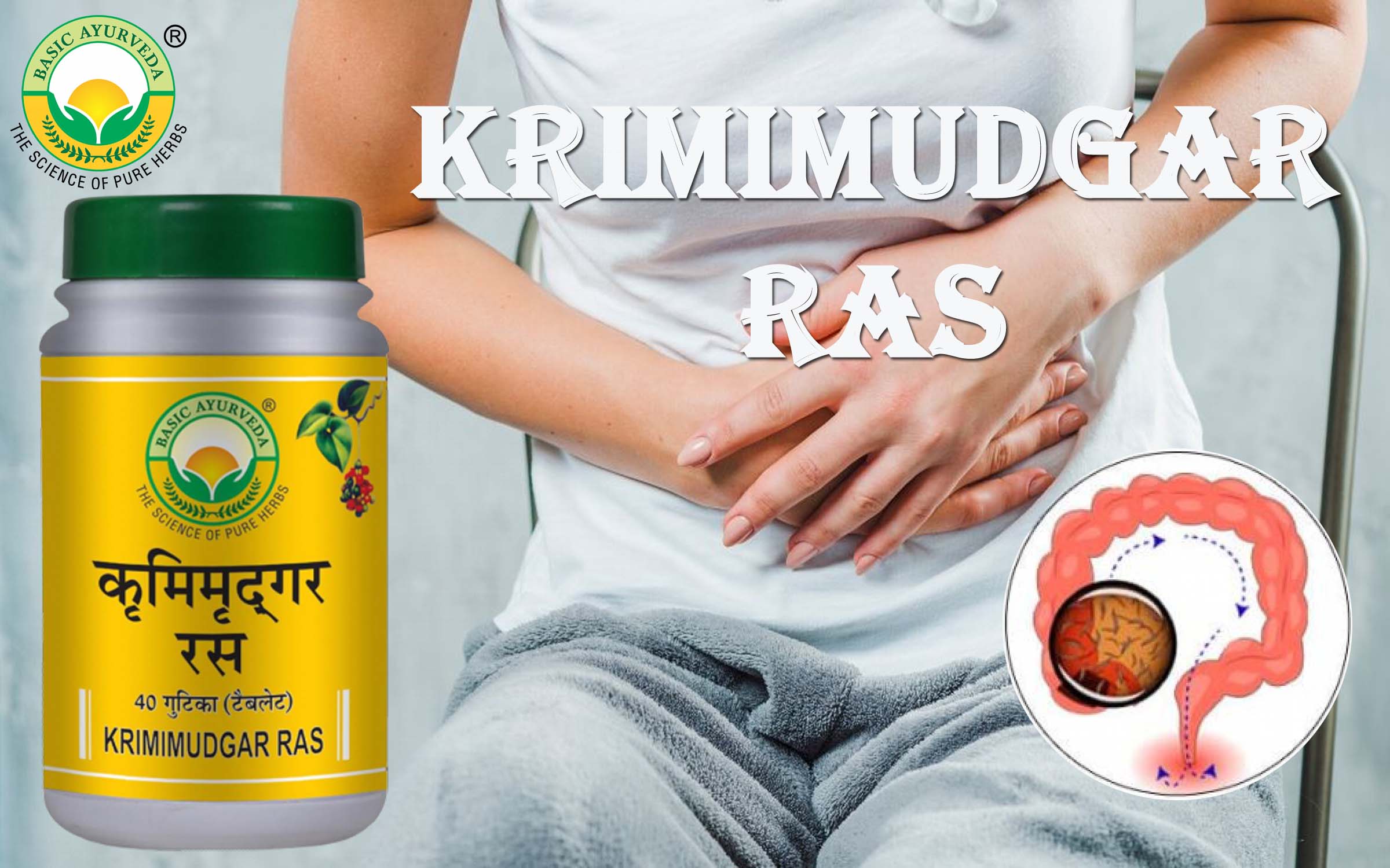 • Basic Ayurveda Krimimudgar is a classical Ayurvedic formulation with herbal and mineral ingredients in tablet form. It is used for worms generated by cough accumulation.
