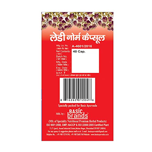 • Basic Ayurveda Lady Norm Capsules with all the goodness of nature come in a 40 Capsules pack and are a certified product that is safe to consume daily.