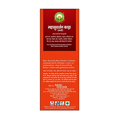 • Basic Ayurveda’s Mahasudarshan Kadha supports immunity and the defenses against bacteria and viruses in our body and removes toxins from the blood. It is a nutritious basic ayurvedic product with good taste. An all-healer with no side effects!