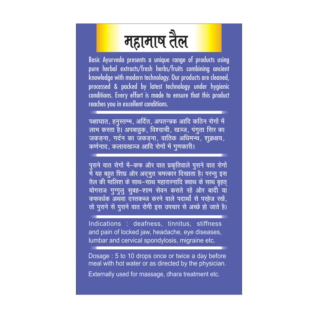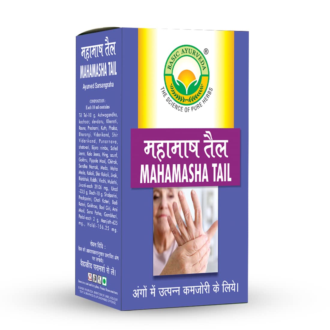 • Basic Ayurveda Mahamasha Tail massage oil may help therapy improves blood circulation and neck pain especially in the targeted areas where there might be stiffness inflammation or pain.