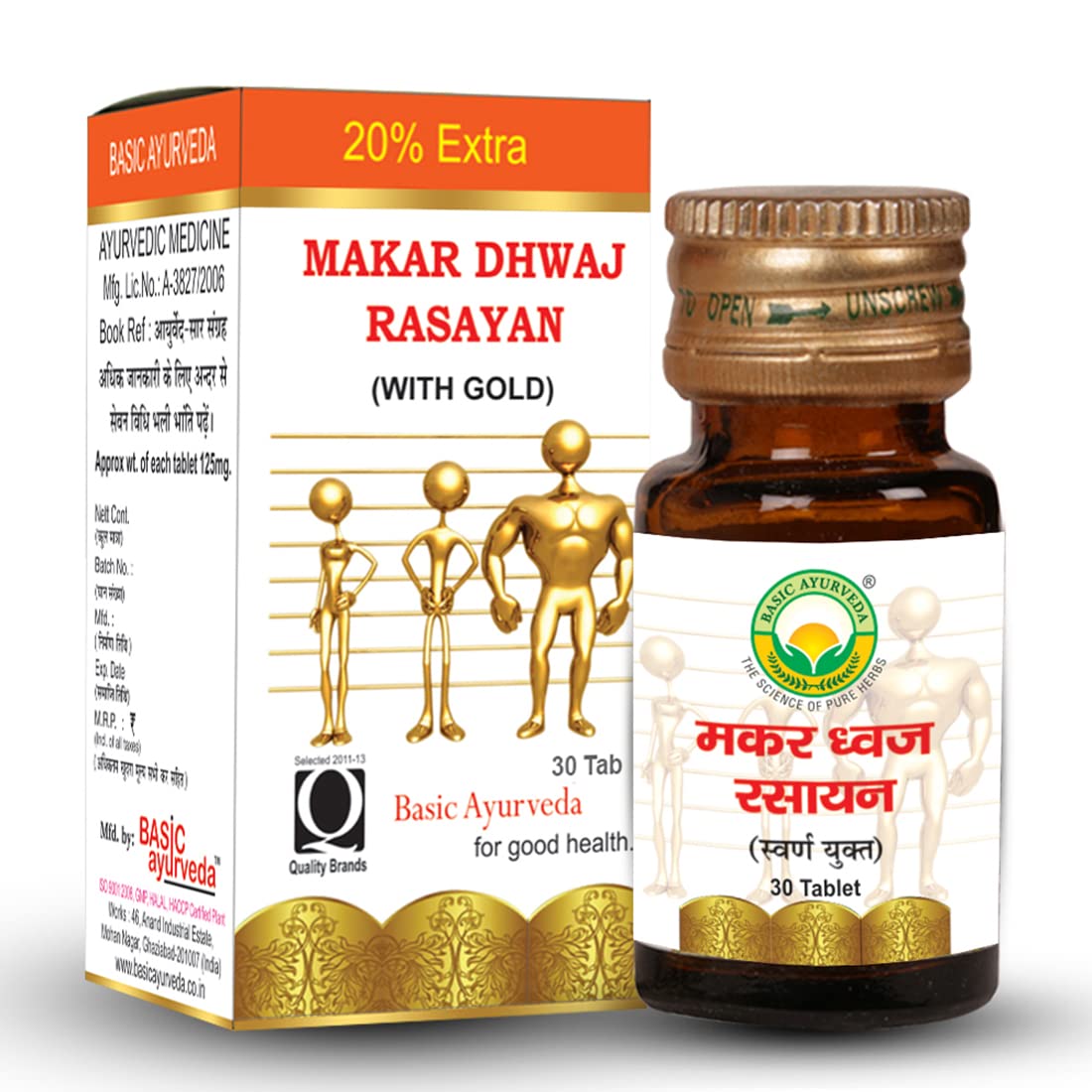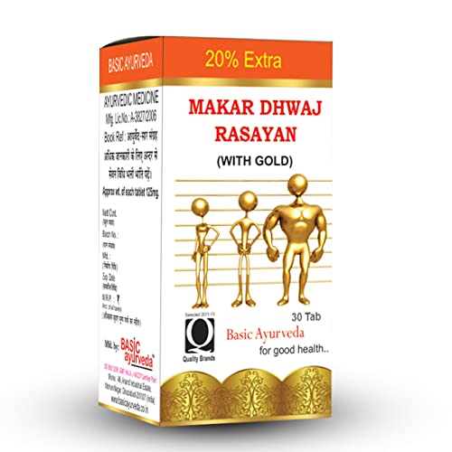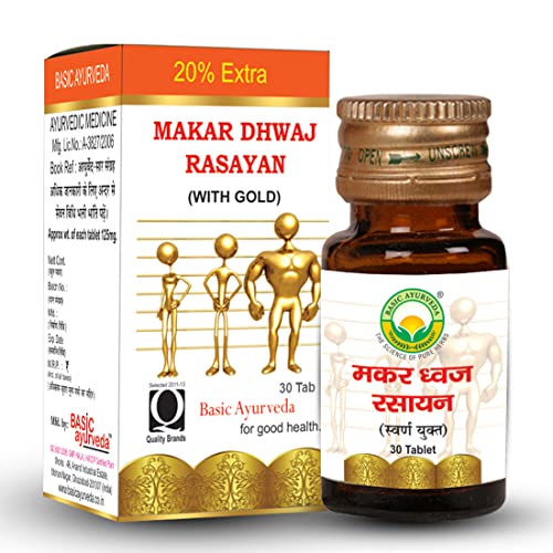 Basic Ayurveda Makar Dhwaj Rasayan with Gold 30 Tablets | Herbal Supplement for Vitality & Wellness