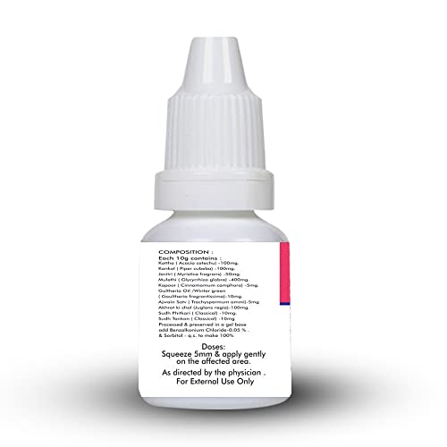 • Basic Ayurveda Mouth Gel blocks chemicals in our brain that are responsible for pain sensation and inflammation. Therefore it provides relief from pain discomfort and symptoms of inflammation such as redness swelling or burning sensation due to mouth ulce