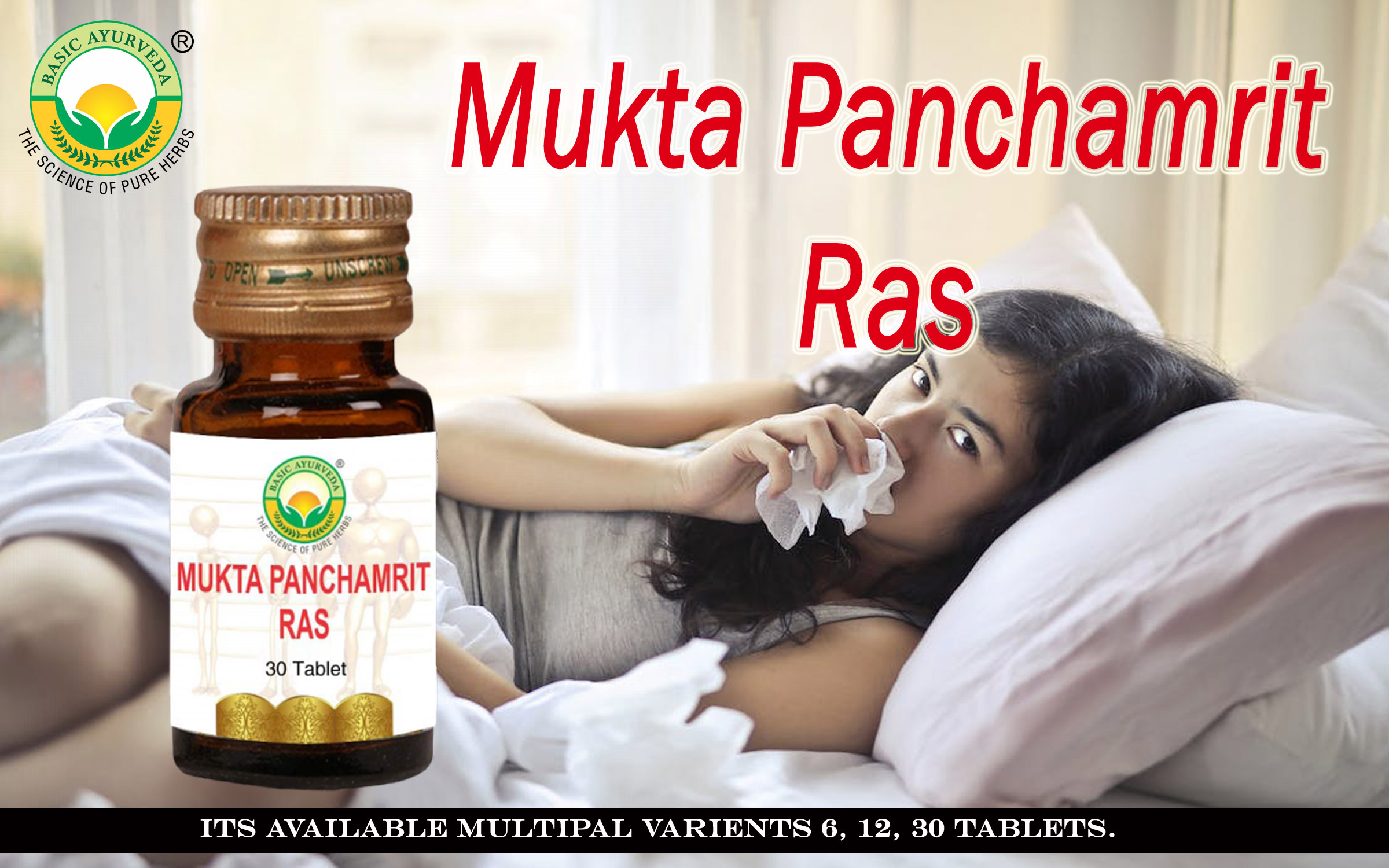 • Mukta Panchamrit Ras is classical ayurvedic preparation comes in tablet form that balances Vata and Kapha health. It has shown results for efficient working to solve problems naturally.
