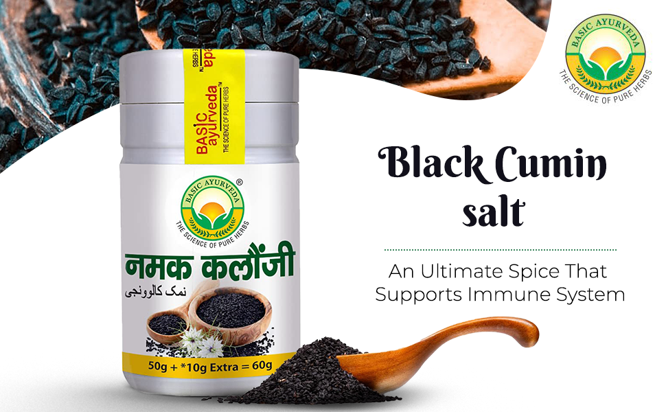 BASIC AYURVEDA Namak Kalonji (Black Cumin Salt) 60gm | Immunity Booster | Ayurvedic Supplements For Immune Suppport | A Powerful Blend Of Natural Ingredients | Certified Herbs, Extra Strength Formula