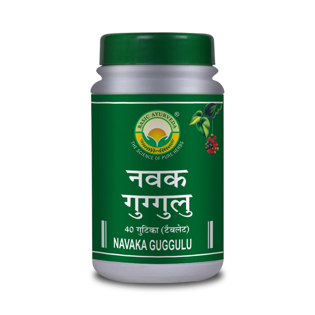 • Basic Ayurveda Navaka Guggulu Tablet with all the goodness of nature comes in a 40 Tablets pack and is a certified ayurvedic product that is safe to consume daily.