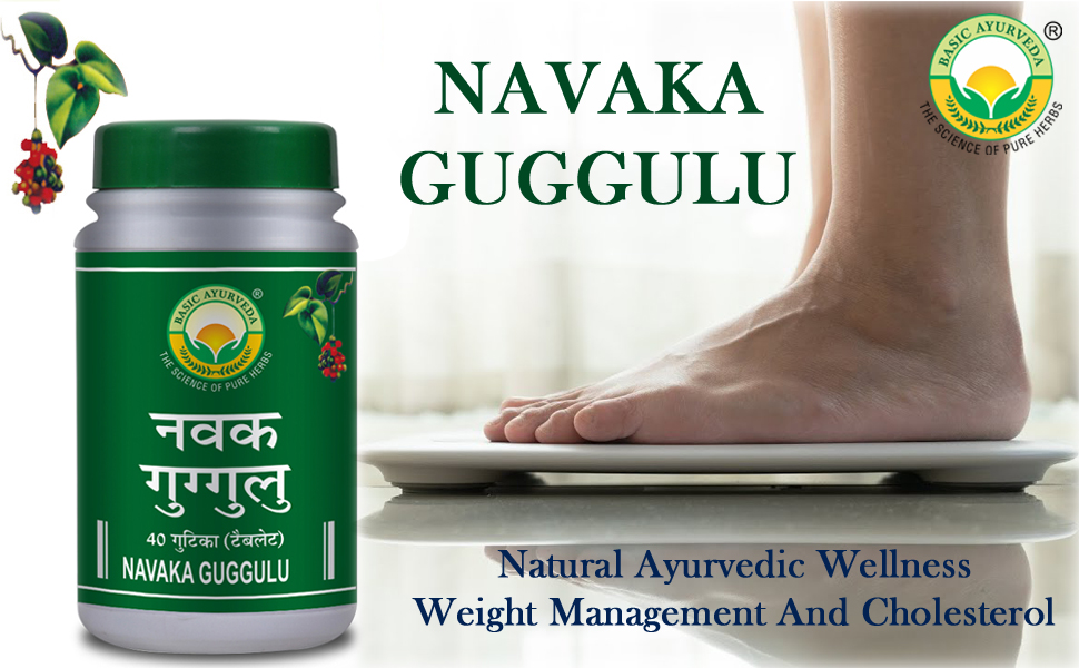 • Basic Ayurveda's Navaka Guggulu tablet is an amazing natural ayurvedic herbal formulation for weight management and cholesterol. It improves digestion and also helps Vata and Kapha.