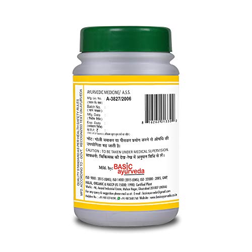 • This tablet contains heavy metal ingredients hence should only be taken under strict ayurvedic supervision. This is most commonly used in North Indian Ayurvedic practice.
