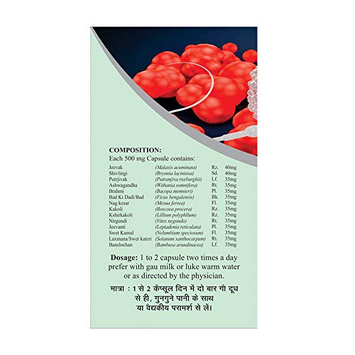 • Direction for use: It is recommended to take 1-2 capsules twice a day with gau milk or lukewarm water or as directed by a physician. Always adhere to the dosage recommended by the ayurvedic doctor or healthcare expert.