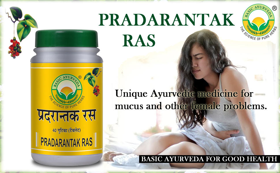 • Basic Ayurveda's Pradarantak Ras is an Ayurvedic formulation that comes in tablet form helpful for female health monthly problems and low back pain.
