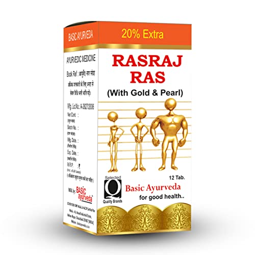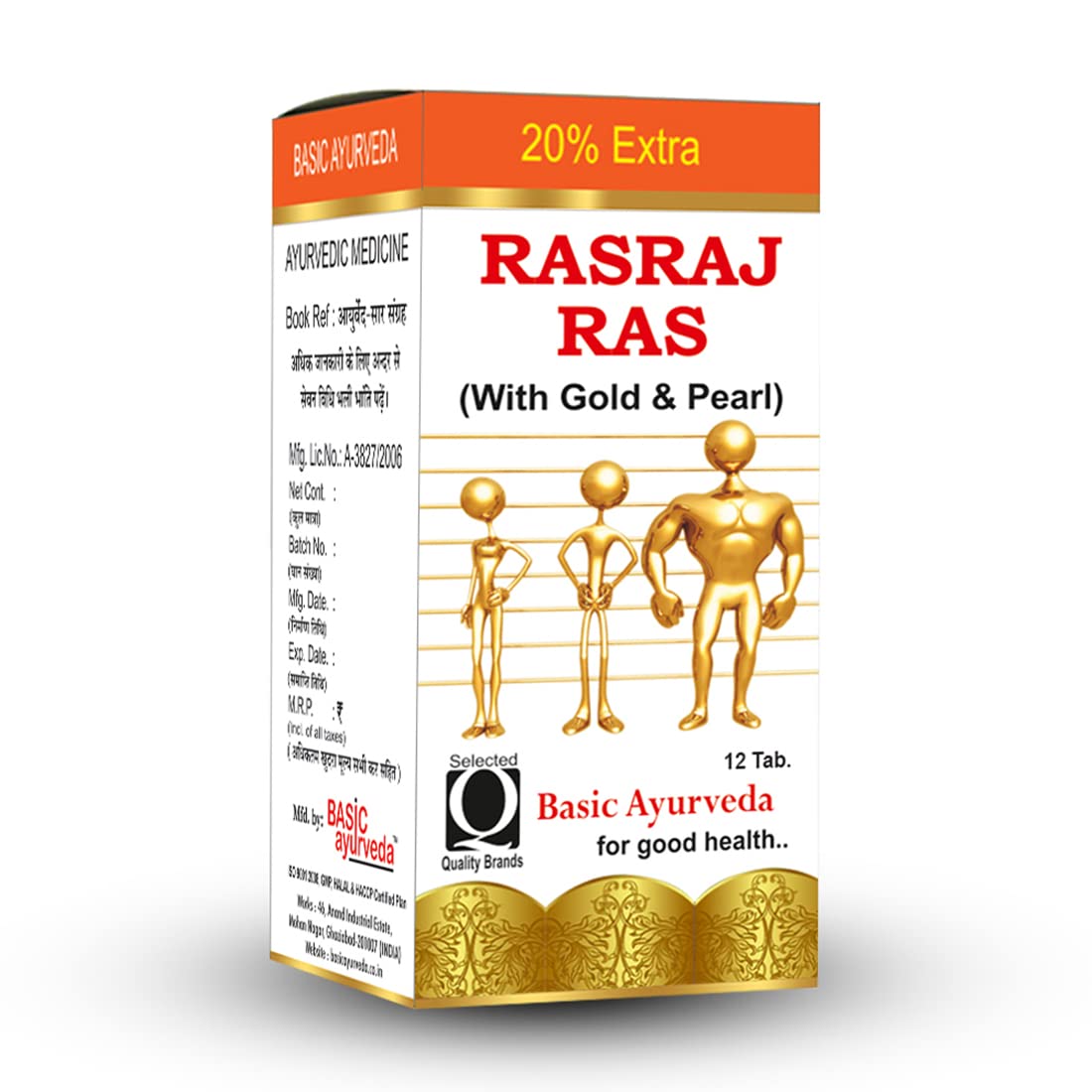 Basic Ayurveda Rasraj Ras with Gold & Pearl 12 Tablets Pack of 2 | Nerve Tonic for Energy & Mobility