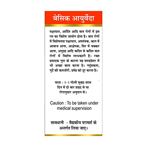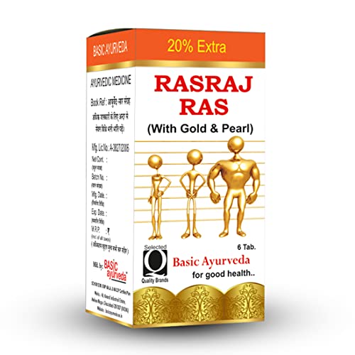 Basic Ayurveda Rasraj Ras with Gold & Pearl 6 Tablets | Ayurvedic Supplement for Nerve & Vata Health