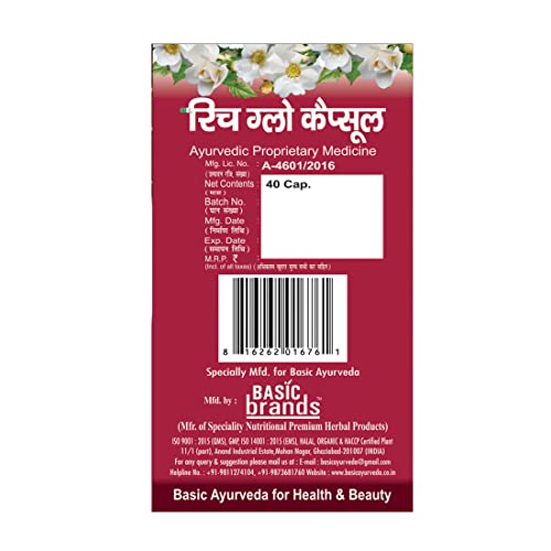• Basic Ayurveda Rich Glow Capsule with all the goodness of nature come in a 40 Capsules pack and are a certified product that is safe to consume daily.