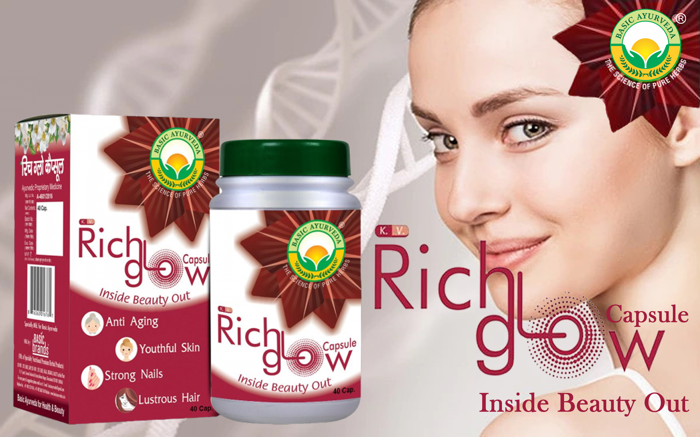 • Rich Glow is a nutritional ayurvedic formulation capsule for skin problems primarily for helping in all types of skin health and it is very beneficial.