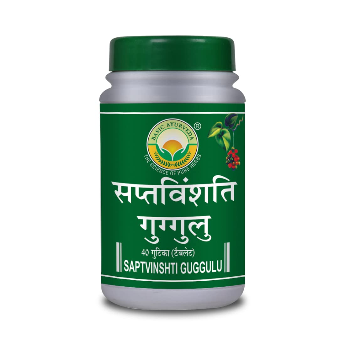 Basic Ayurveda Saptvinshti Guggulu tablet with all the goodness of nature comes in a 40 Tablets pack and is an ayurvedic certified product that is safe to consume daily.