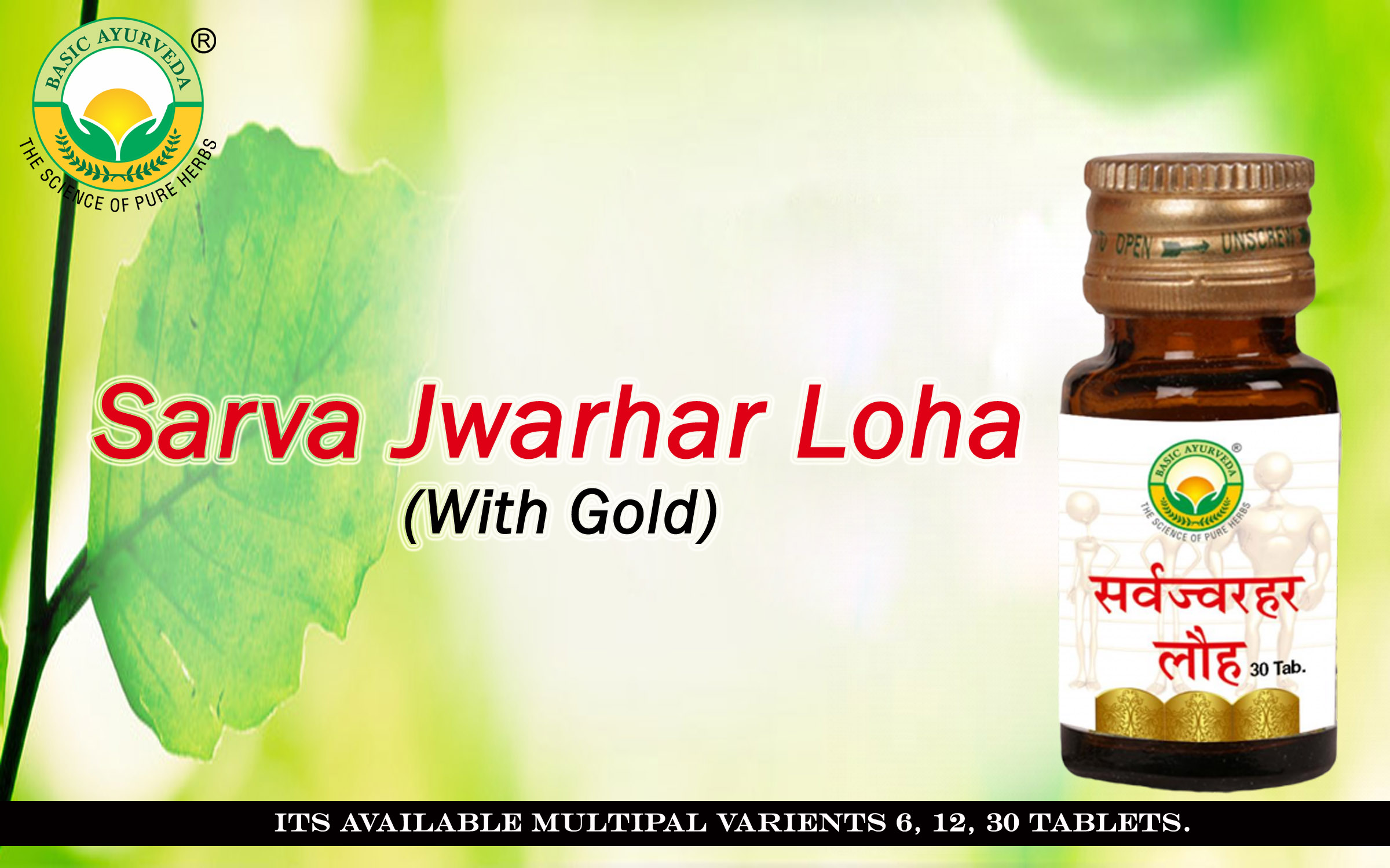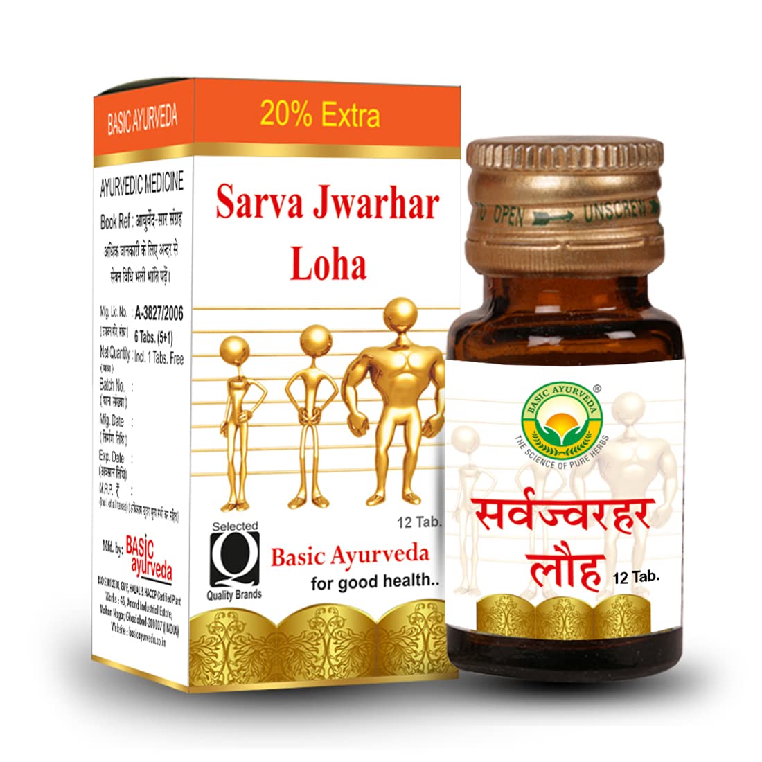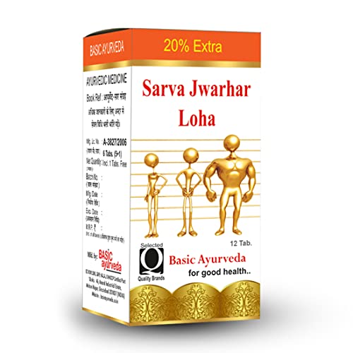 Basic Ayurveda Sarva Jwarhar Loha with Gold 12 Tablets Pack of 2 | Herbal Supplement for Strength & Wellness