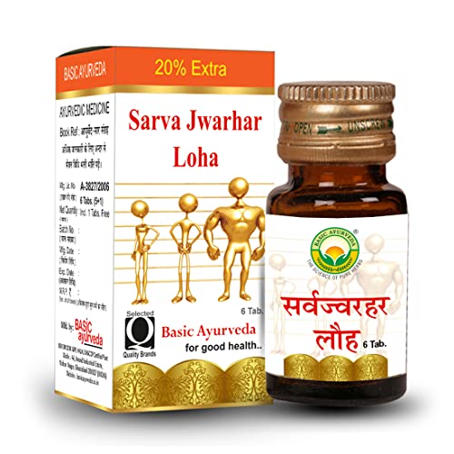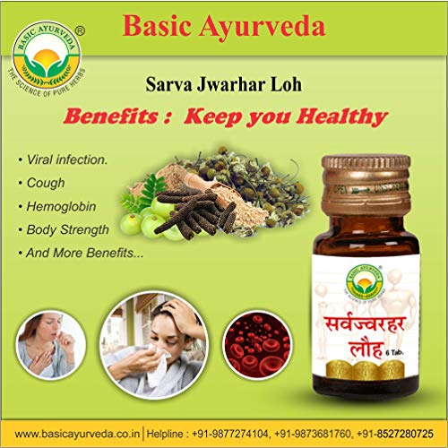 Basic Ayurveda Sarva Jwarhar Loha with Gold 6 Tablets | Ayurvedic Remedy for Fever, Weakness & Detox