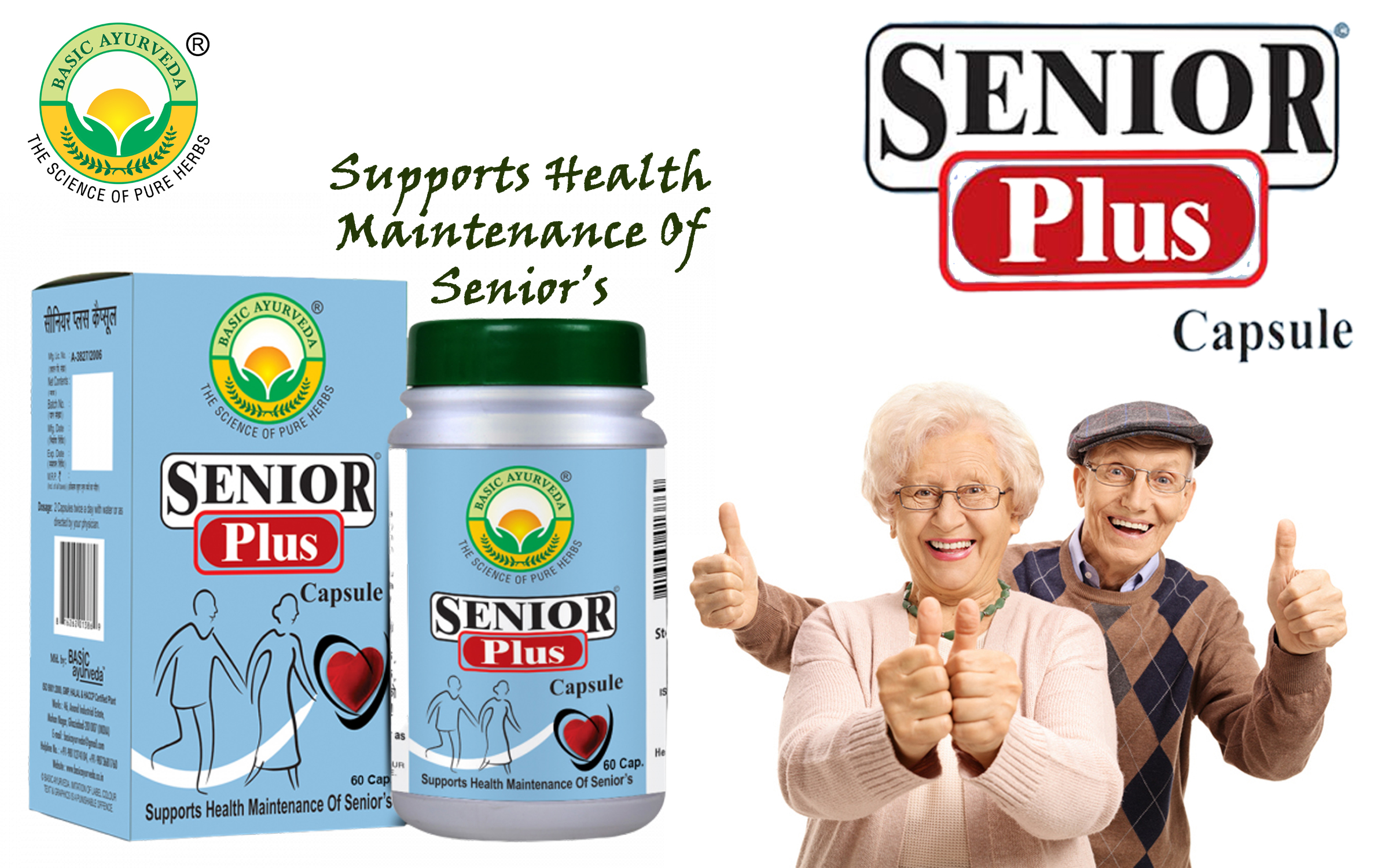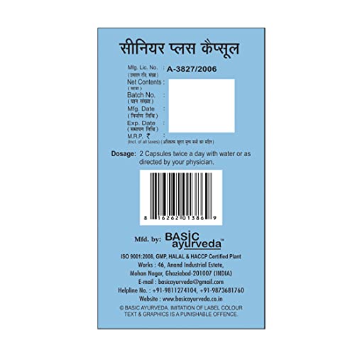 • Basic Ayurveda Senior Plus Capsule is formulated for old age problems. Old-aged persons need more nutrients to aid the repair process of the body. Their body needs more vitamins and proteins as it experiences a continuous degenerative process. Basic Ayurv