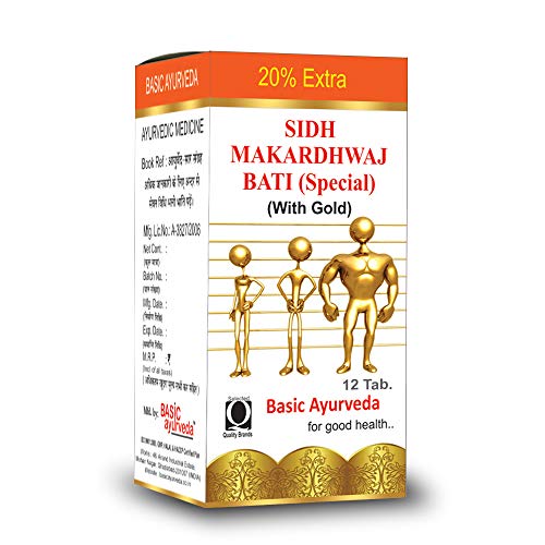 Basic Ayurveda Sidh Makardhwaj Bati (Special) with Gold 12 Tablets | Herbal Supplement for Energy & Immunity