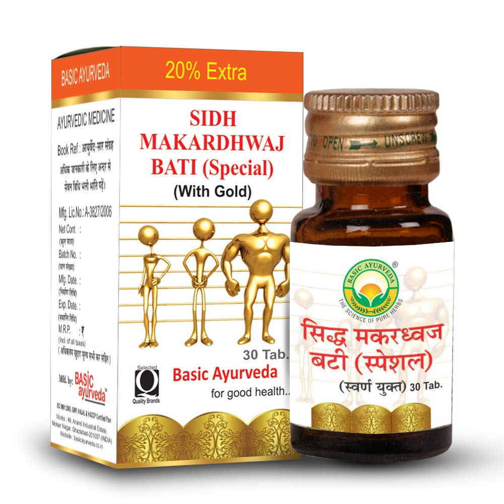 Basic Ayurveda Sidh Makardhwaj Bati (Special) with Gold 30 Tablets | Ayurvedic Formula for Wellness & Rejuvenation