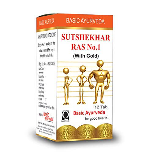 BASIC AYURVEDA Sutshekhar Ras No.1 With Gold 12 Tablets | Ayurvedic Supplements For Stomach Health | A Powerful Blend Of Natural Ingredients Extra Strength Formula