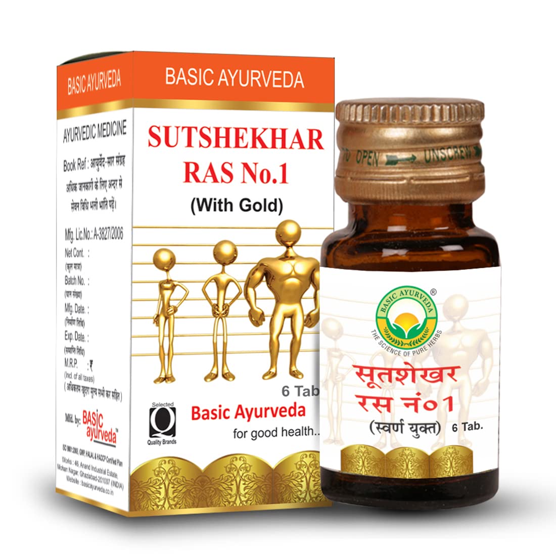 BASIC AYURVEDA Sutshekhar Ras No.1 With Gold 6 Tablets Pack Of 2 | Ayurvedic Supplements For Stomach Health | A Powerful Blend Of Natural Ingredients Extra Strength Formula