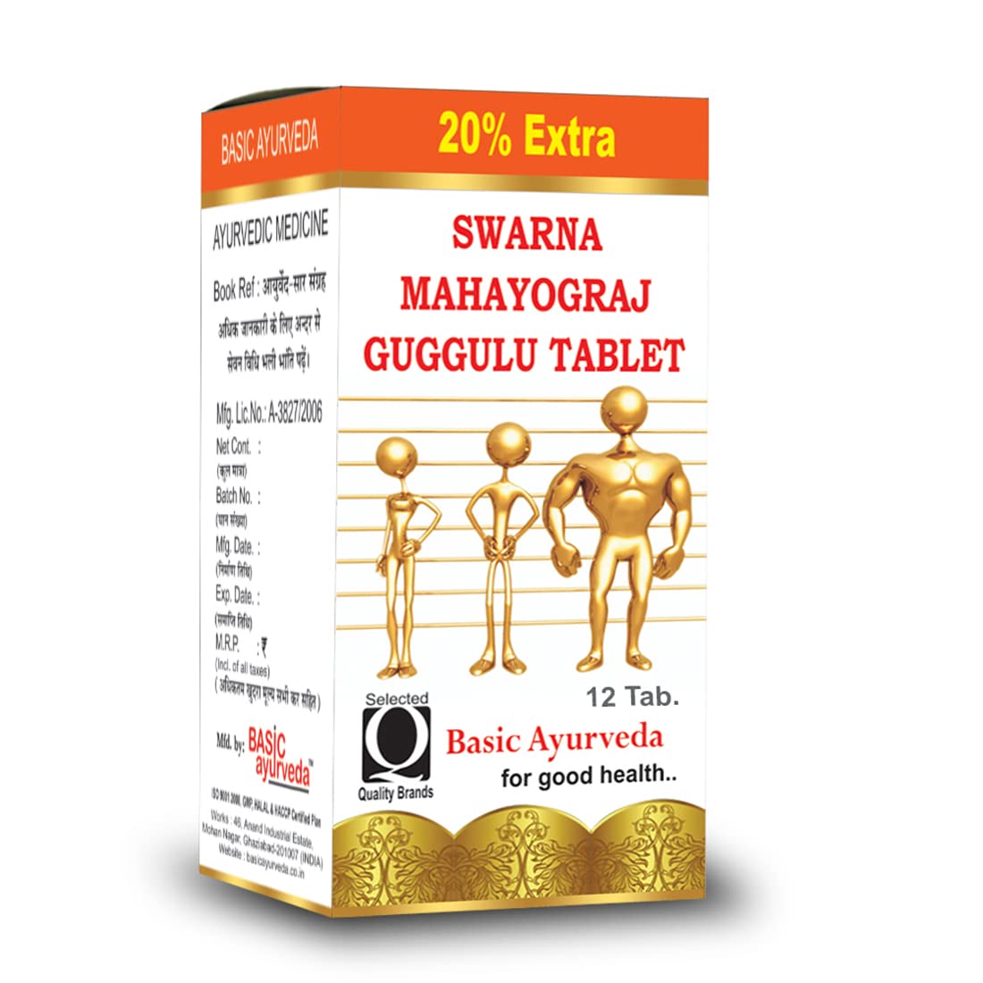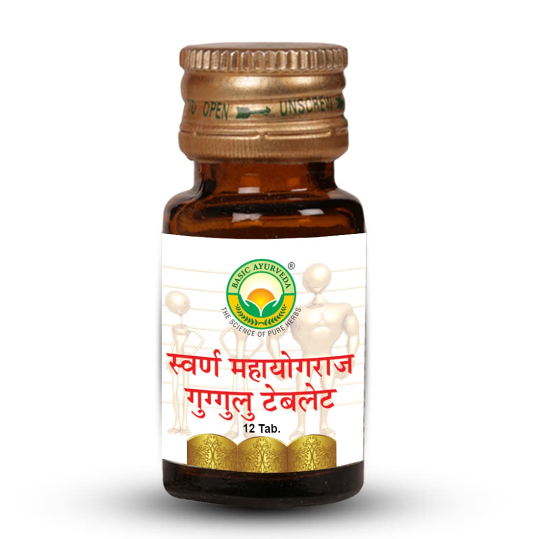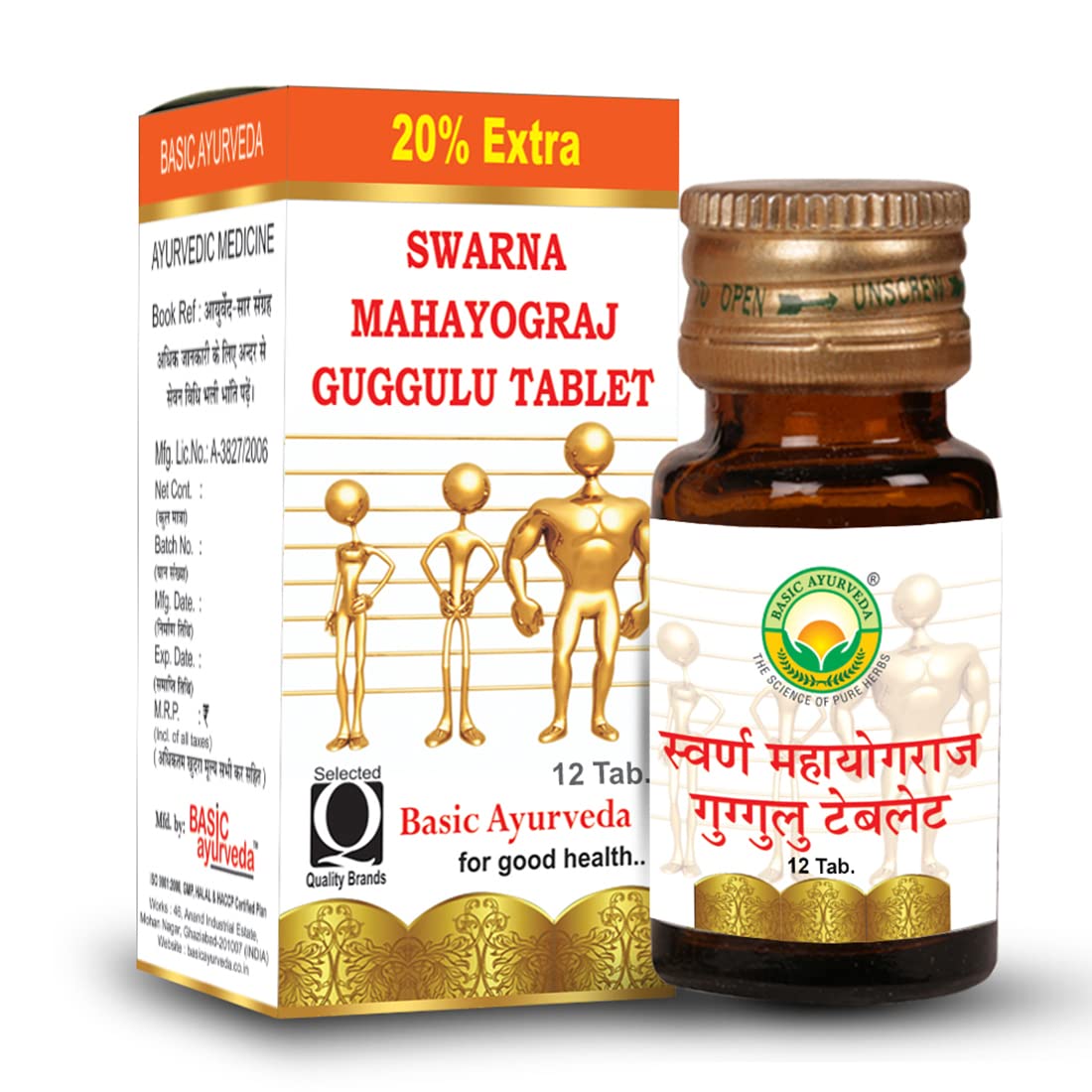 HomeHealth & PersonalDiet & NutritionHealth SupplementsBASIC AYURVEDA Swarna Mahayograj Guggulu with Gold 12 Tablets Pack of 2 | Ayurvedic Supplements for Helps Vata & Pain Health | A Powerful Blend of Natural Ingredients Extra Strength Formula
