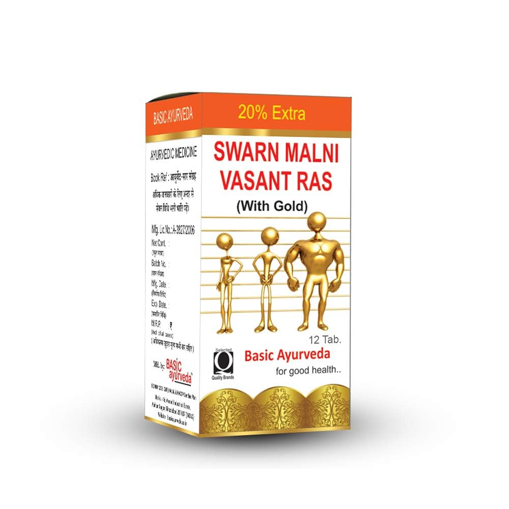 • Basic Ayurveda Swarna Malini Vasant Ras is an ayurvedic herbal formulation that comes in tablet form as an immunity enhancer and antibiotic gold & pearl tablet used for the problems of general weakness after temperature or any wayward condition such as a