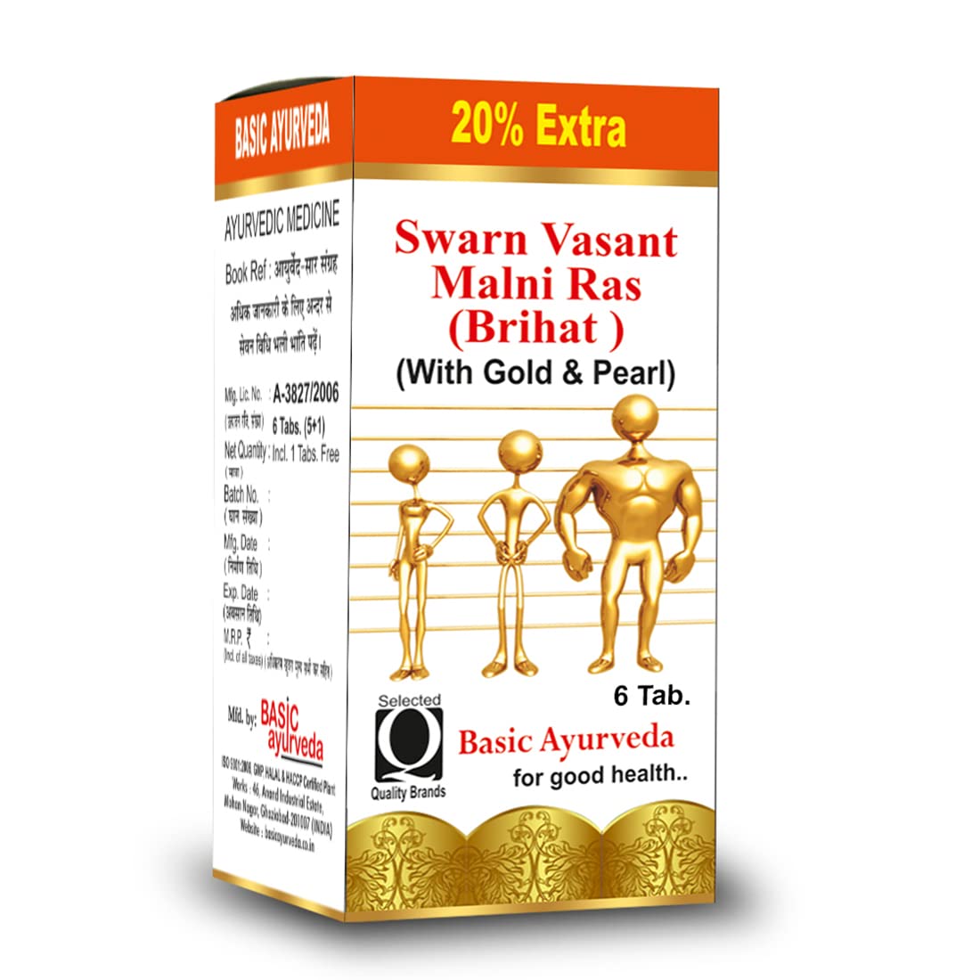 Basic Ayurveda Swarna Malini Vasant Ras (Brihant) With Gold & Pearl 6 Tablets x 2 Packs | Ayurvedic Immunity Booster | Premium Herbal Blend for Strength, Energy & Wellness
