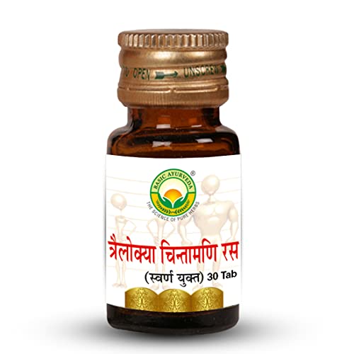 Basic Ayurveda Trailokya Chintamani Ras with Gold 30 Tablets | Herbal Supplement for Stamina, Brain & Nerves