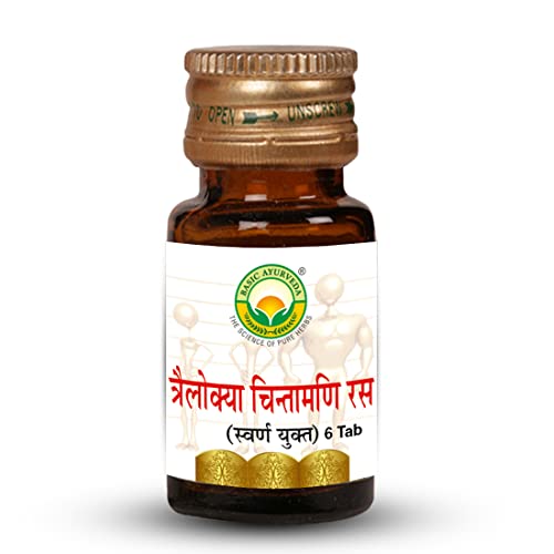 Basic Ayurveda Trailokya Chintamani Ras with Gold 6 Tablets | Herbal Supplement for Energy & Mental Strength