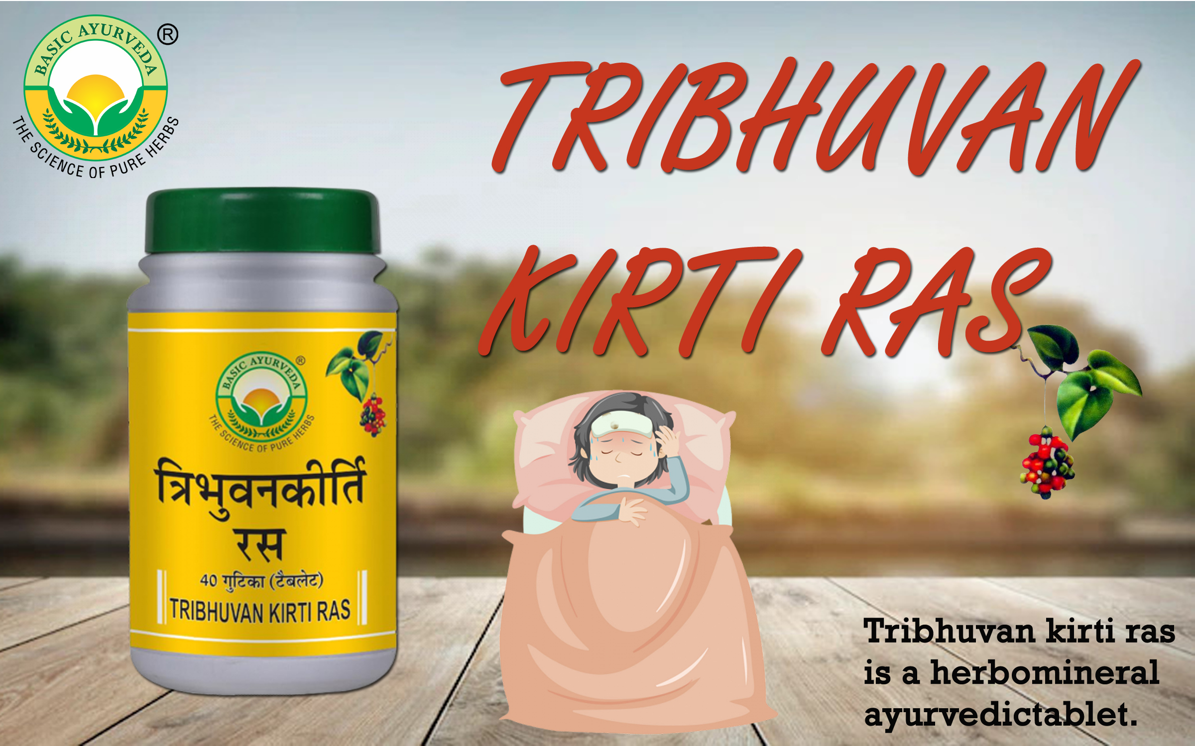 • Basic Ayurveda Tribhuvan Kirti Ras is an Ayurvedic formulation that comes in tablet form. It is a good ayurvedic tablet for severe pain in the whole temperature cold sore throat and dry cough.
