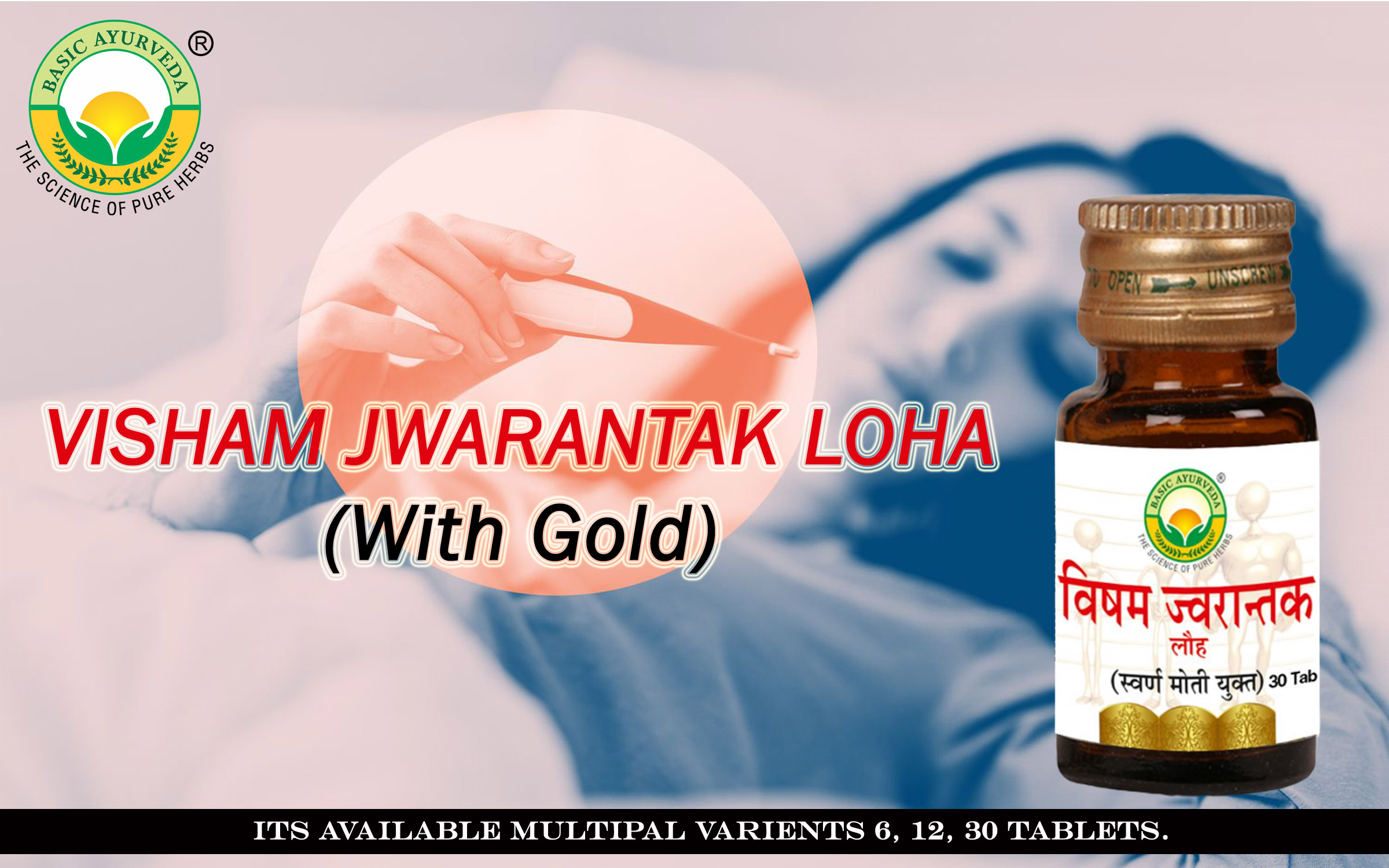 • Basic Ayurveda Visham Jwarantak Loha with Gold tablet is a pure ayurvedic formulation with all kinds of severe temperatures & makes them healthy by increasing overall strength and immunity.