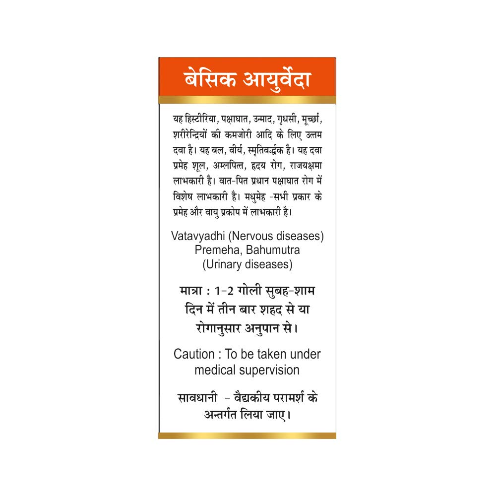 • Direction for use: Take 1-2 tablets morning and evening with honey or according to problems or as directed by the physician. Always adhere to the dosage recommended by the ayurvedic doctor or healthcare expert.