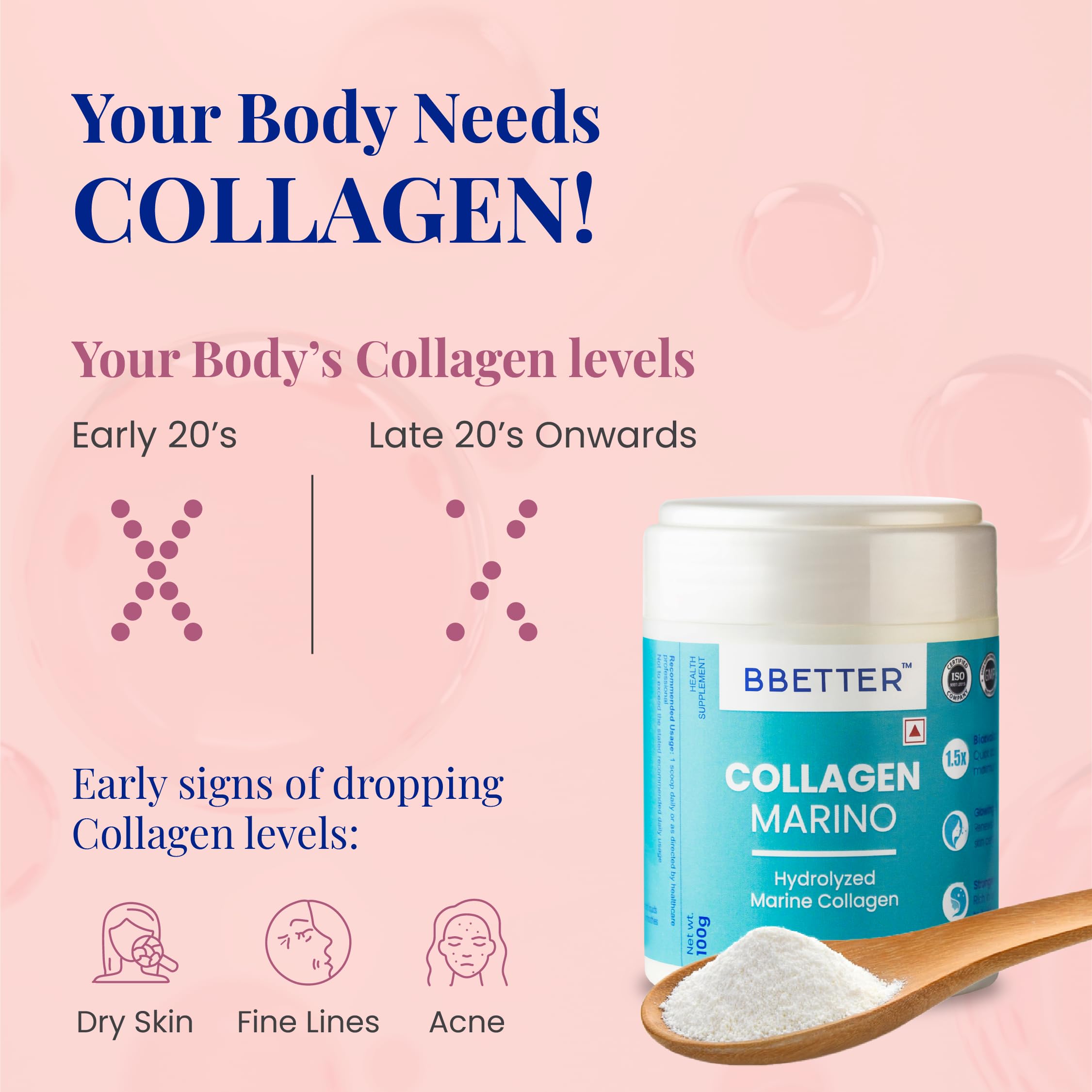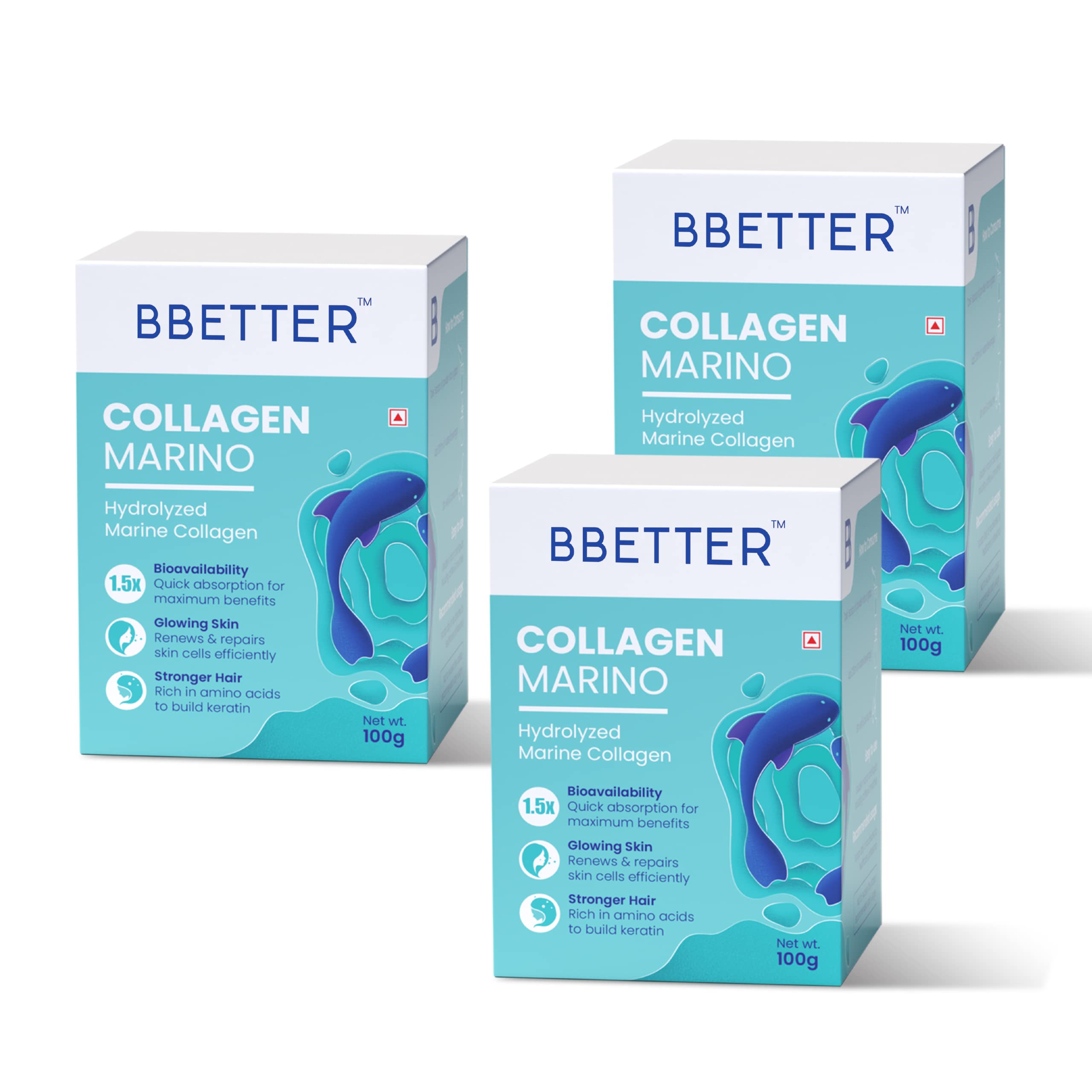 BBETTER Collagen Marino For Women & Men- Pure Hydrolyzed Marine Collagen Supplements For Women & Men Enhances SkinHair Nails & Joints (Pack Of 3) Powder