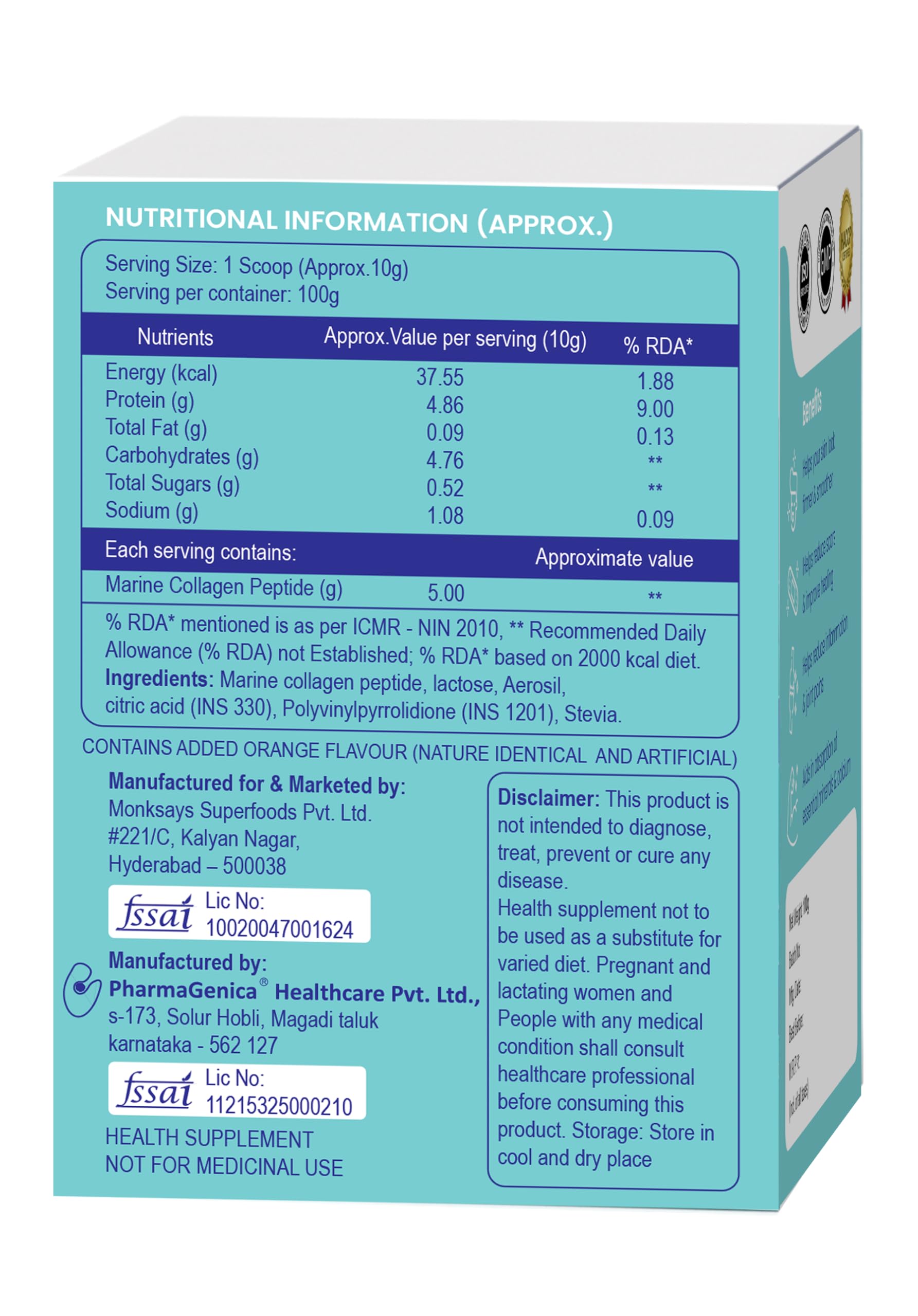 This collagen powder is derived from marine (fish) source and not from Bovine (Cow). This is 1.5 times better than the other sources in high absorbing ability