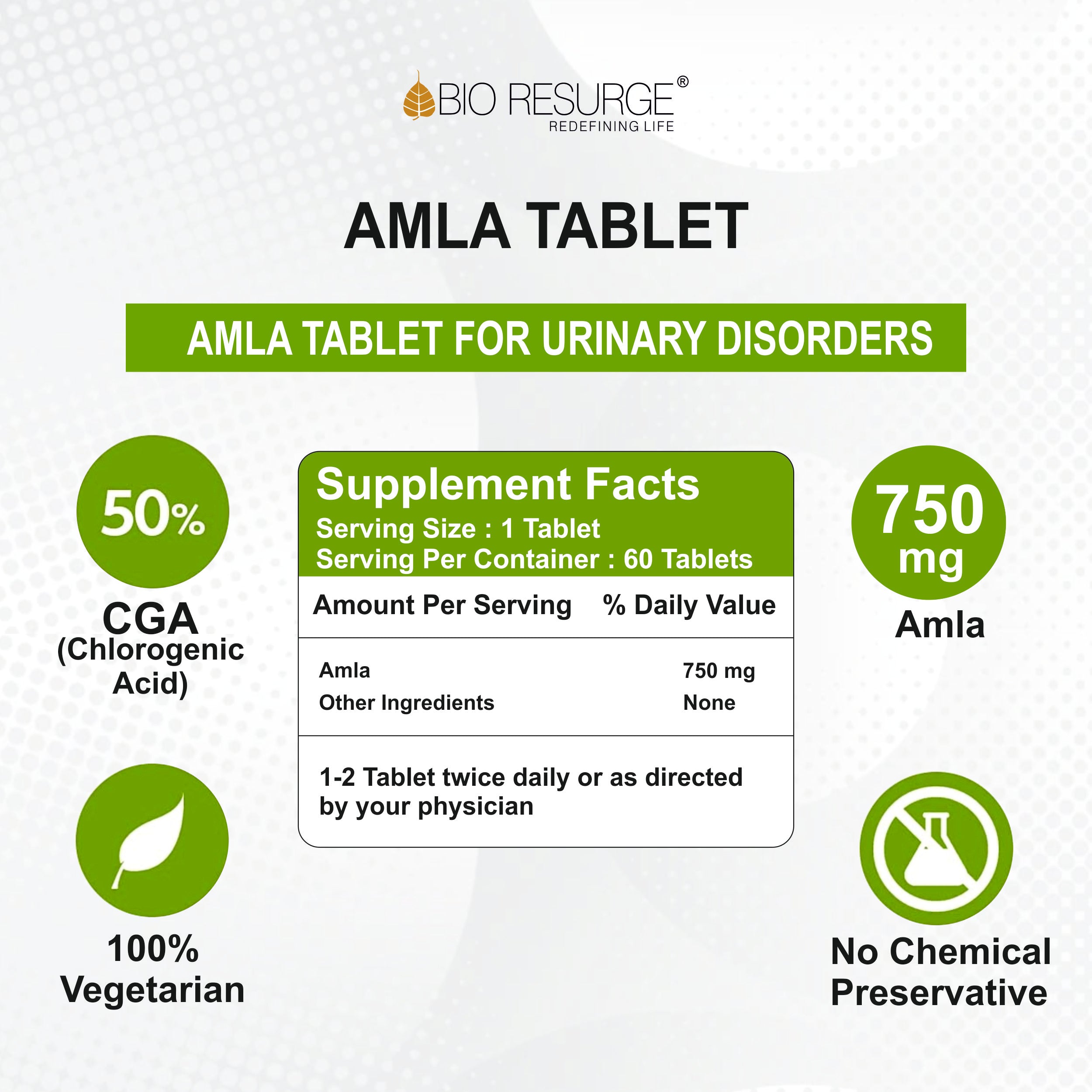 Bio Resurge Amla Tabs.|Vitamin C - 750mg (60 Tabs.)