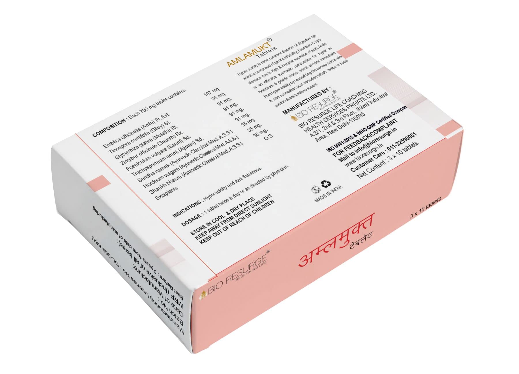 Bio Resurge Life AmlaMukt tablets Ayurvedic Medicine for Gas and Hyper Acidity100% NaturalAmlaMukt Tablet| Pack of 30