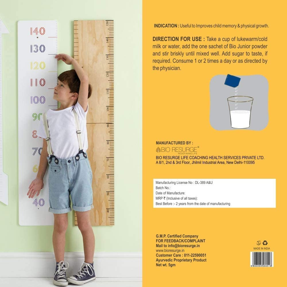 Bio Resurge Bio Junior Powder Kids Health and Nutrition Protien Powder to improve for Nutrition and physical growth(5 gm X 30 Sachets)