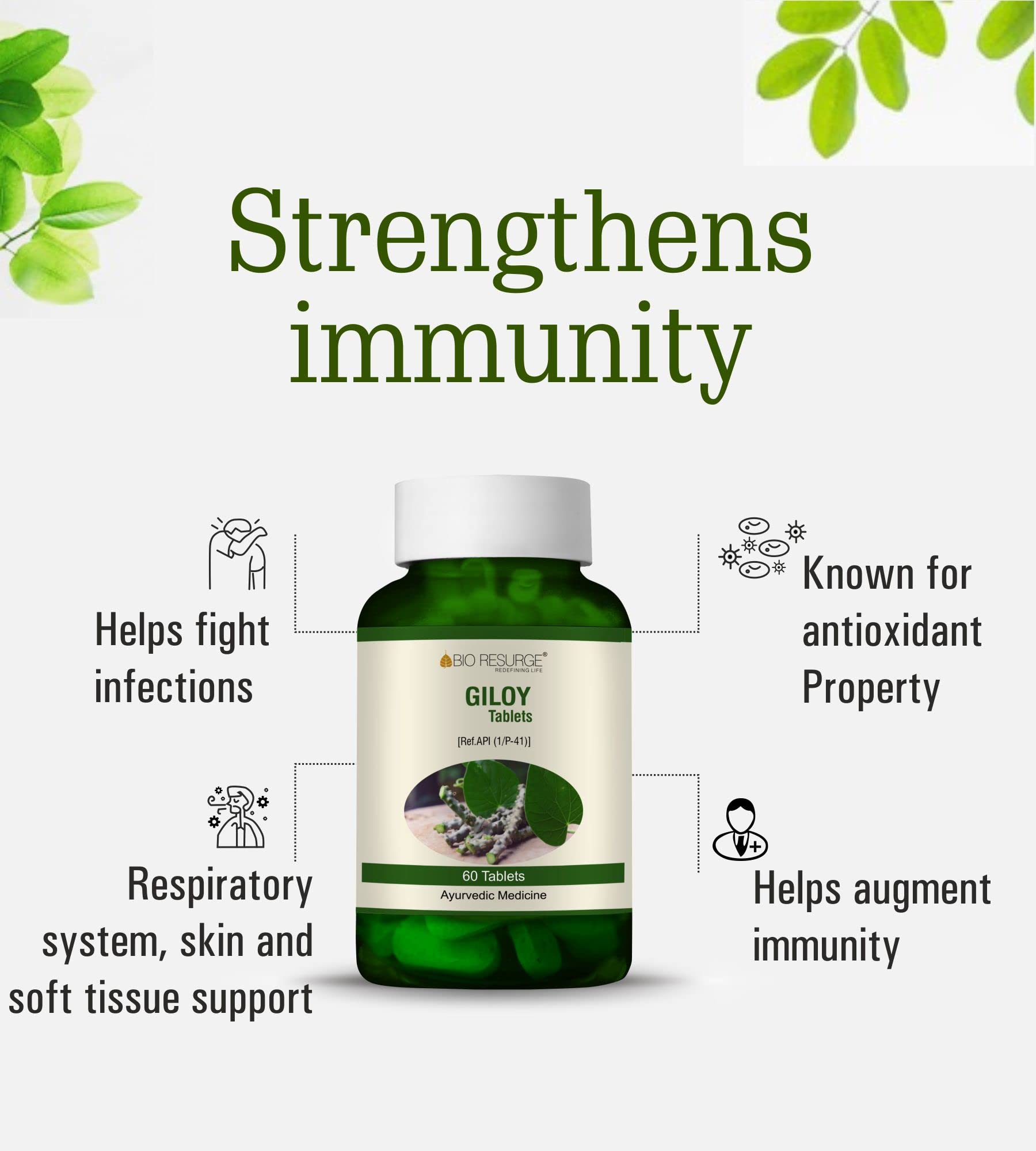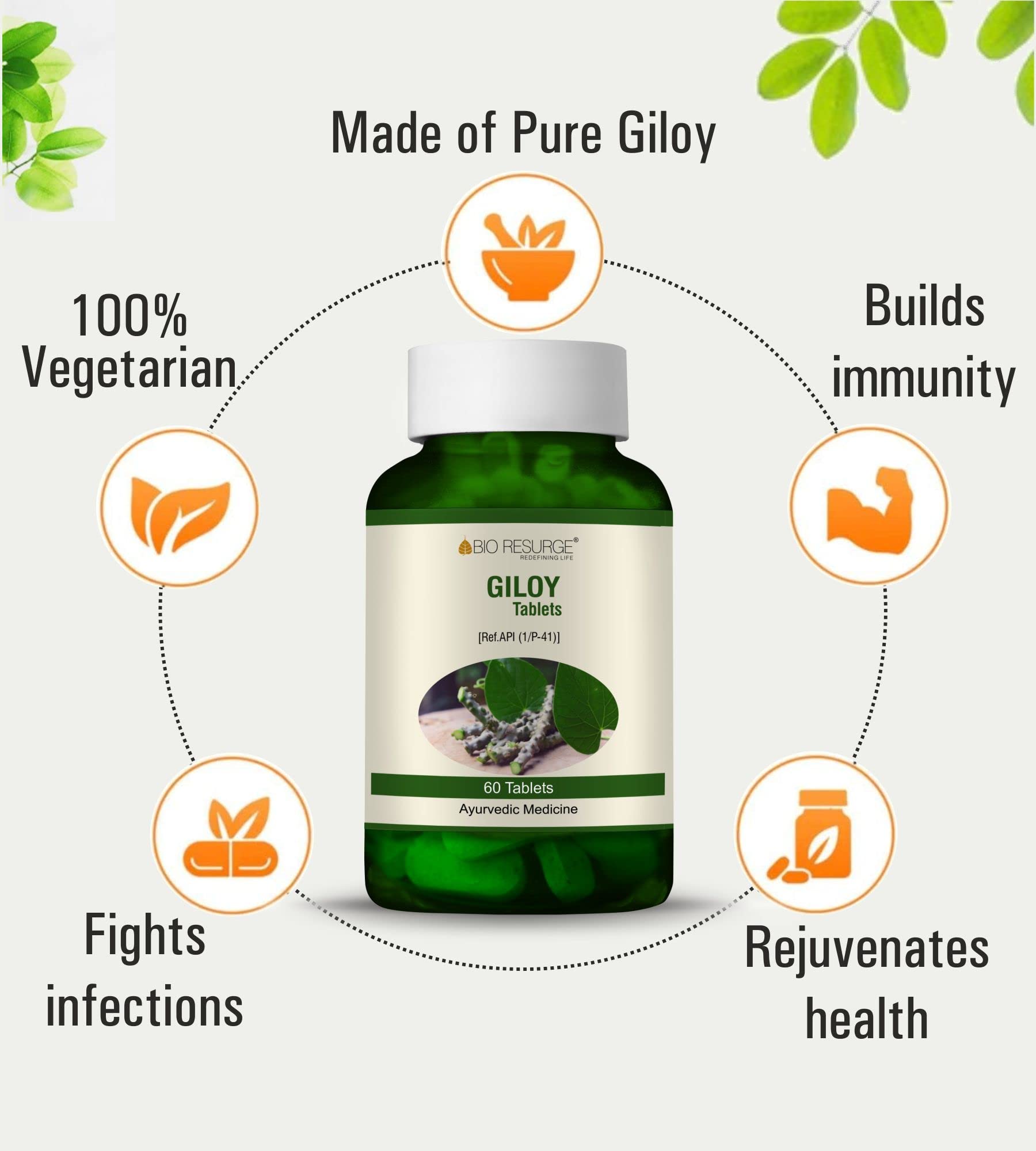 Bio Resurge Giloy Tablets are helpful in Join Pain AsthmaBlood Sugar level and Digestive systems and Boosts Immunity (750 mg) 60 Tablets