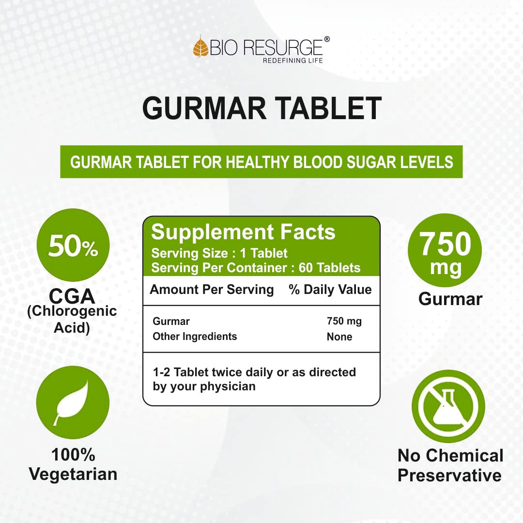 BIO RESURGE LIFE Gurmar Tablet made only with natural Gurmar Leaves - 750 mg (60 Tablets)