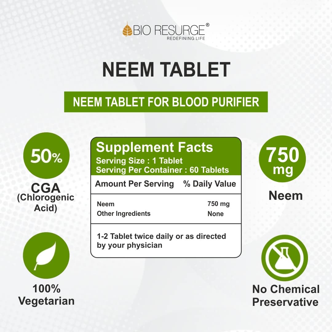 Bio Resurge Neem Tablets Ayurvedic Immunity Booster Blood Purifier Detox Liver Health 750 mg 60